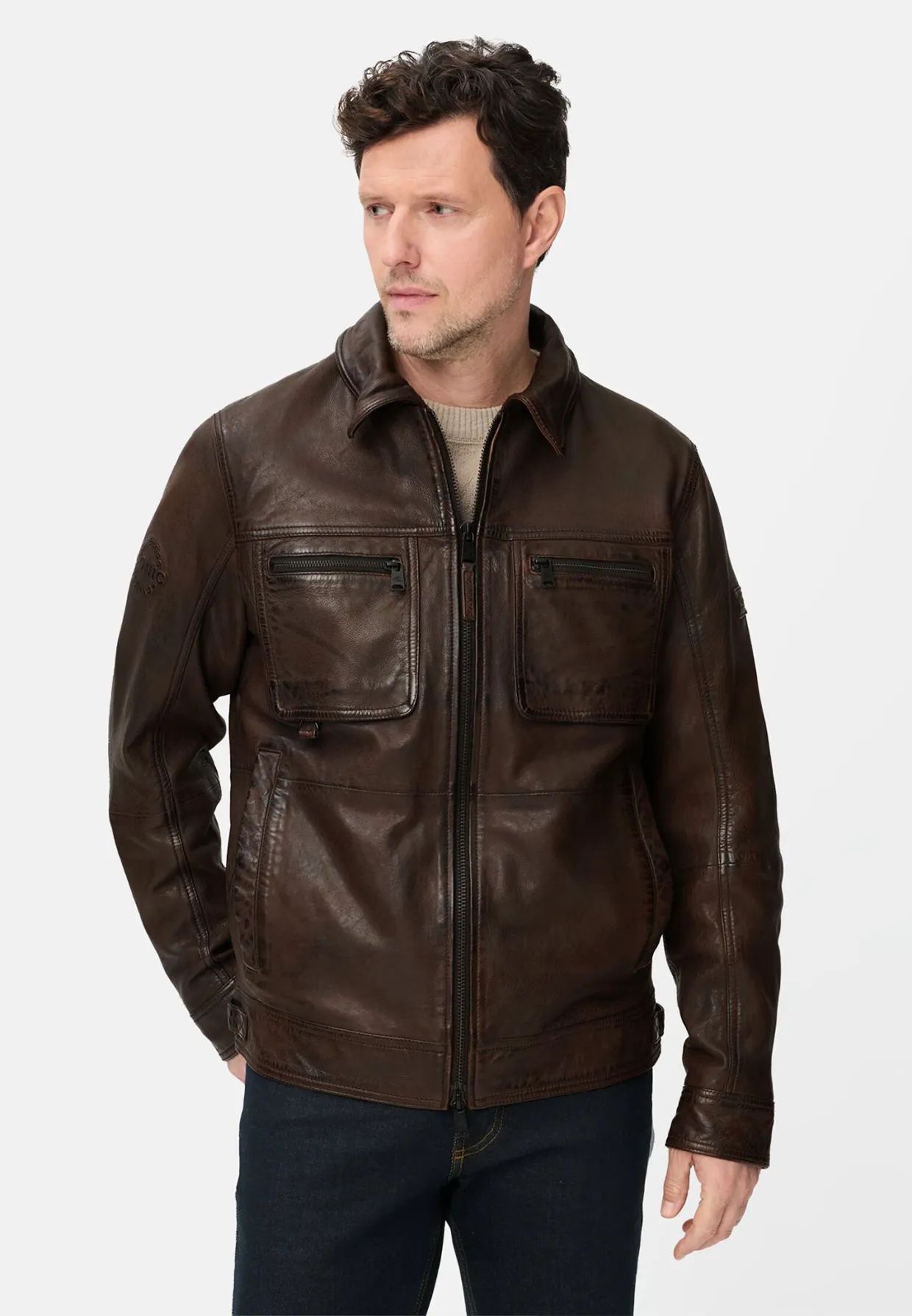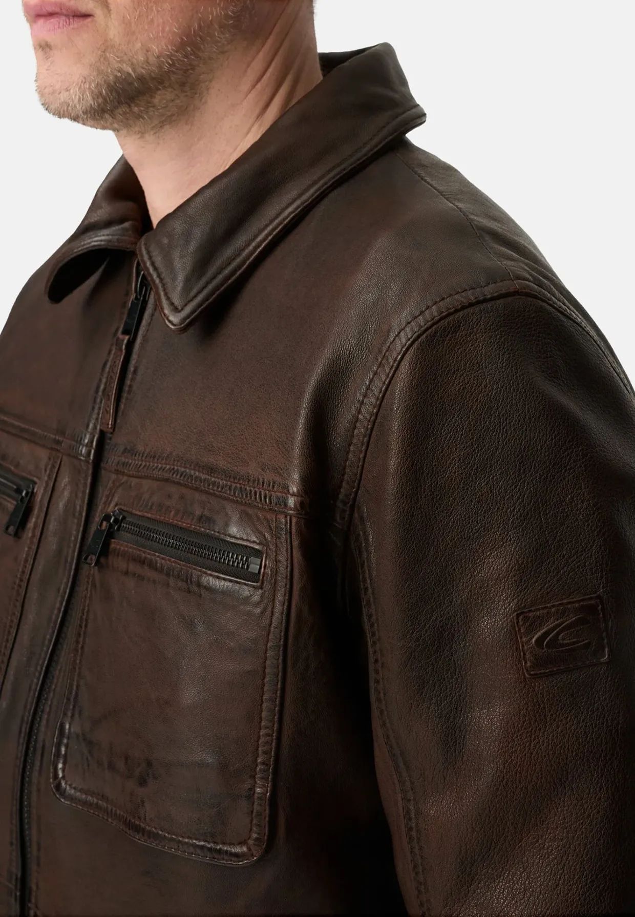 Късо кожено яке с джобове Camel Active