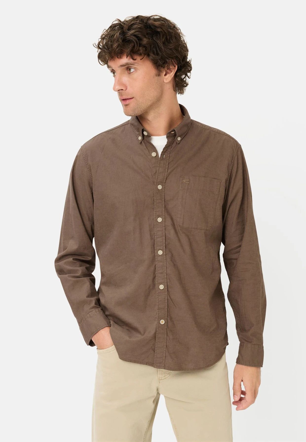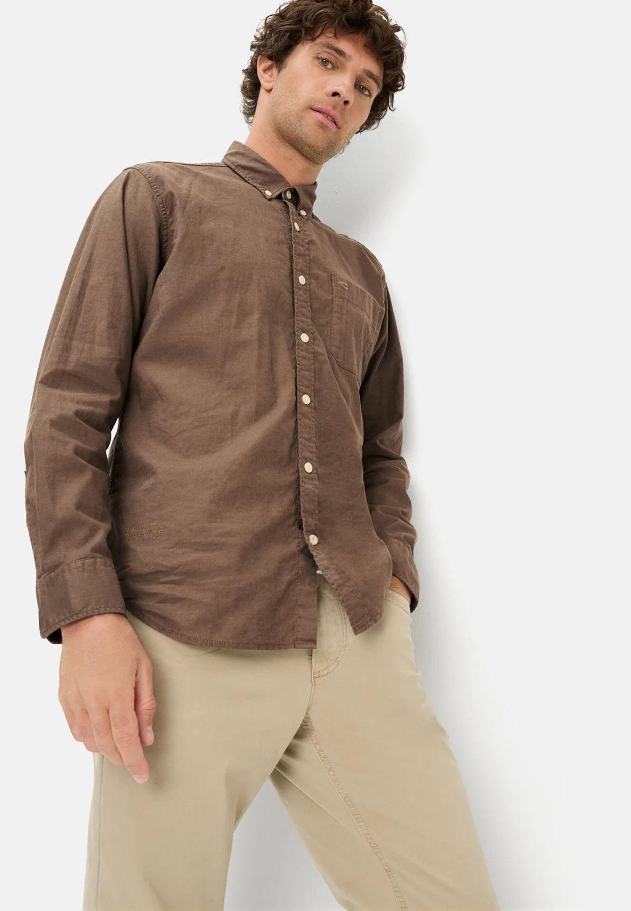 Начало Ежедневни дрехи Ризи Ризи дълъг ръкав Кафява риза Camel Active, лен и памук